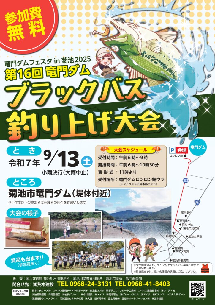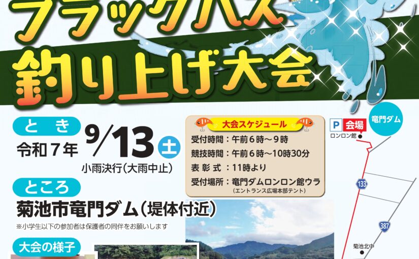 9/13(土)に竜門ダムにてブラックバス釣り上げ大会を開催します☆